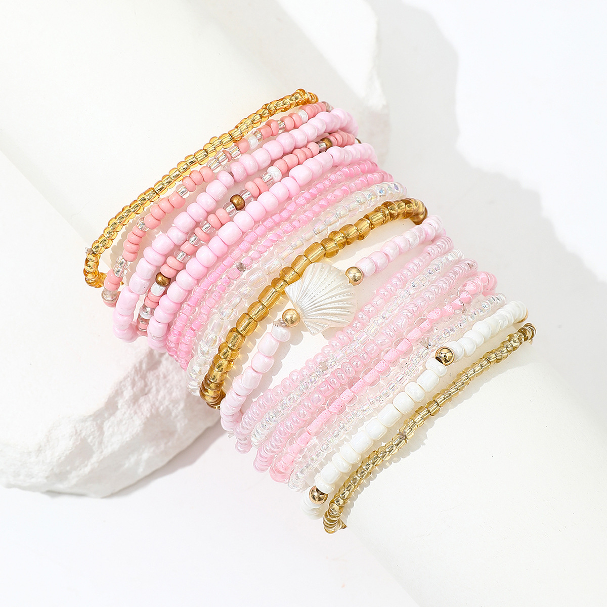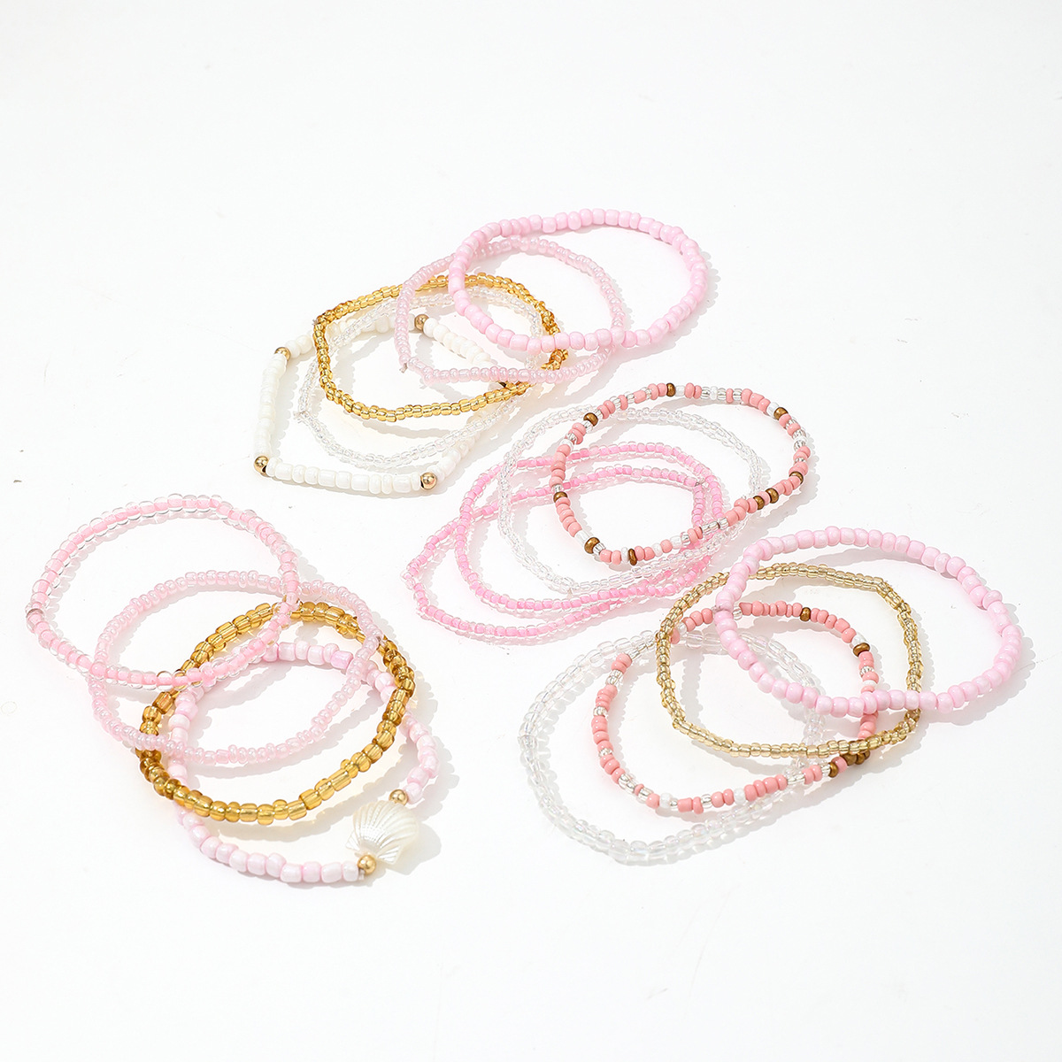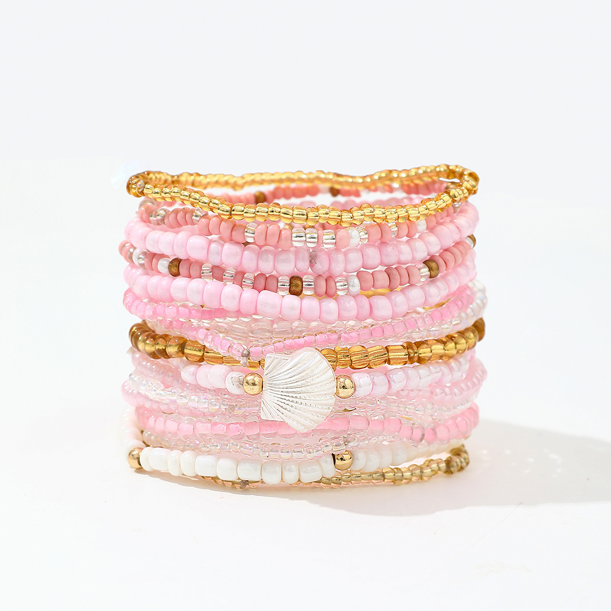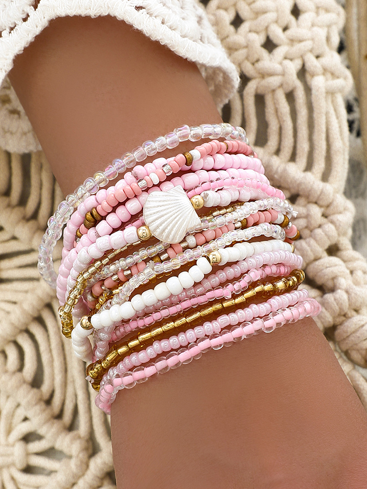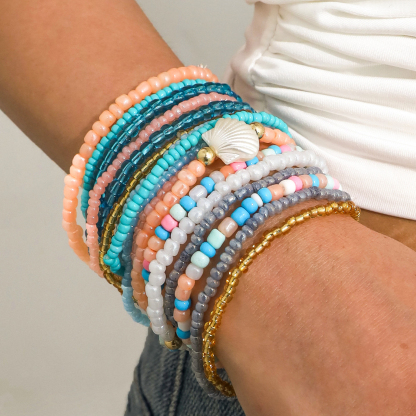 Boho Colorful Beaded Multi-layer Rice Bead Shell 17-piece Bracelet Set