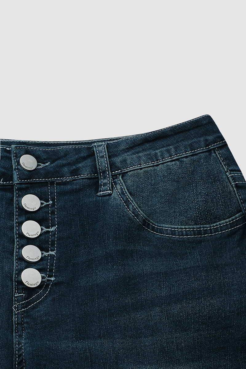 Real pocket for practicality; Button design makes it more fun and vertical; Washed material makes it look vintage and easy on the eyes; Roll hem provides a clean and delicate finish and adds a subtle and polished detail to the garment