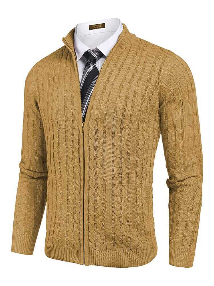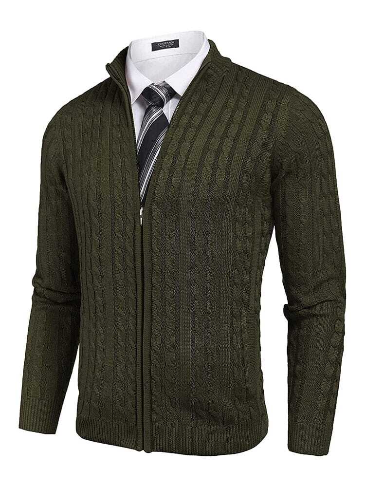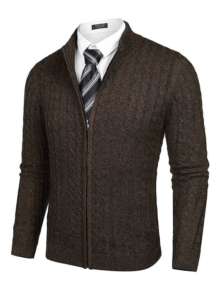 Soft knitted zip up cardigan sweater for men