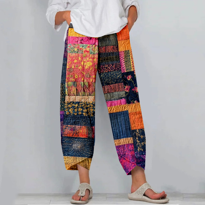 Colorful Boho Patchwork Cropped Casual Pants