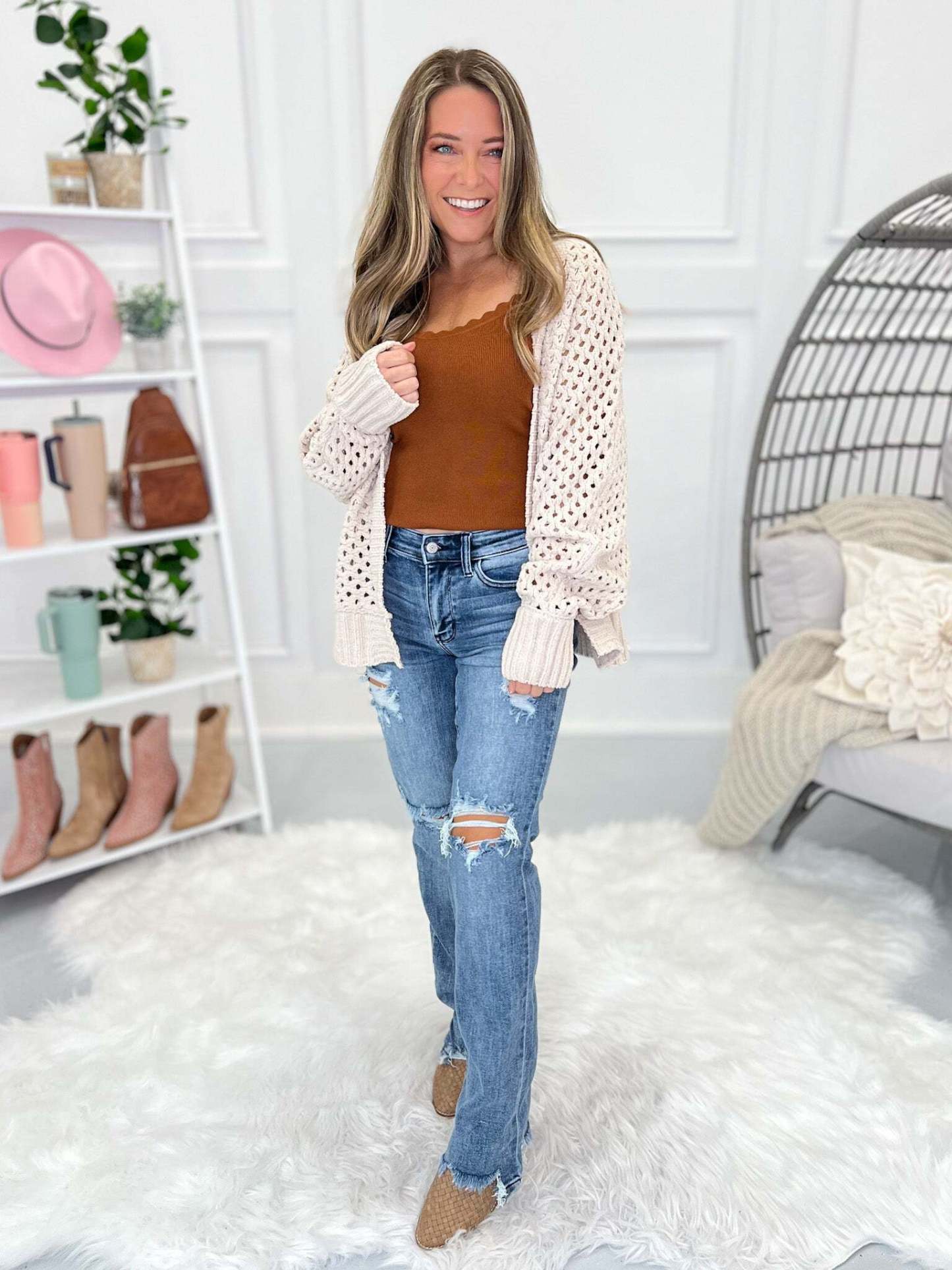 Run and add these to cart! They are Judy Blue straight legs with a stunning, chrome wash - basically the perfect combo! We are in love with the fit of these as they aren't an overly exaggerated straight leg, meaning they aren't too baggy, just perfectly relaxed for a trendy look and comfy feel. These jeans have amazing stretch and a lightweight, soft feel that you will be comfy in year-round.