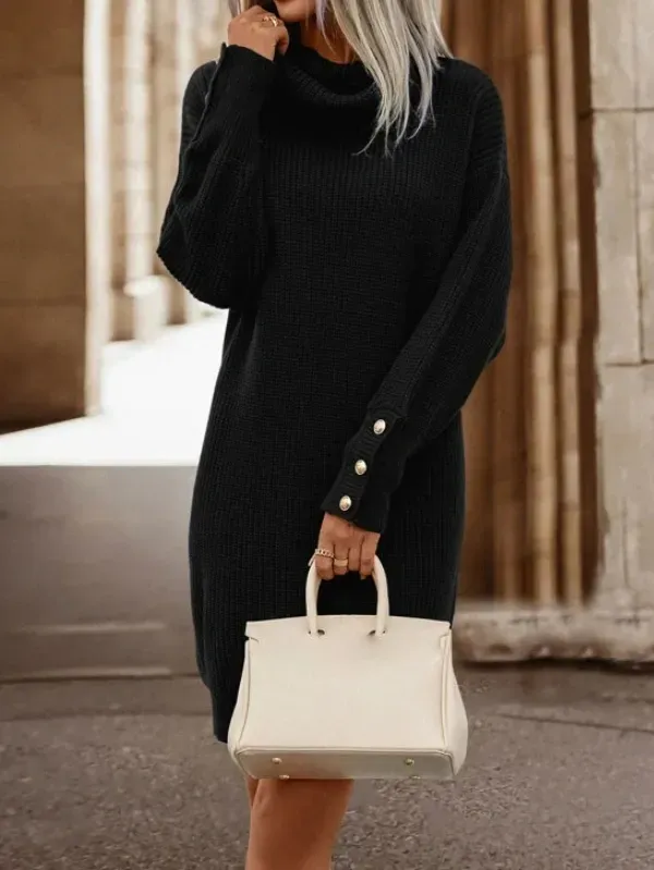 Cowl Neck Drop Shoulder Sweater Dress Without Belt