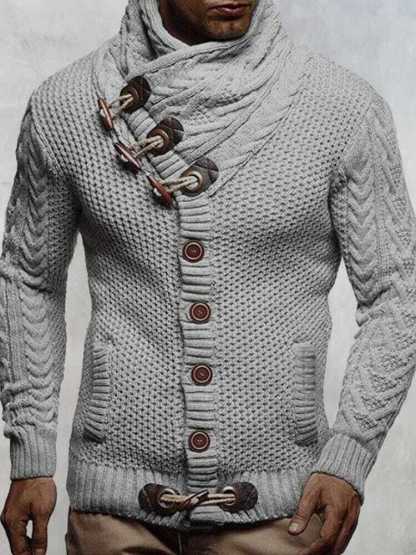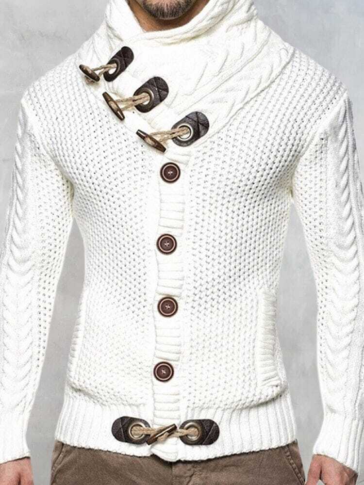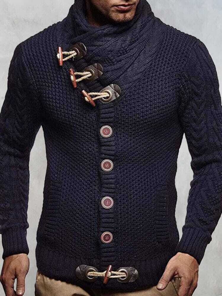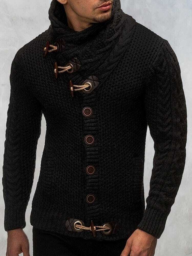 Detail:Fold turtleneck design, wooden horn buttons, 2 hand pockets