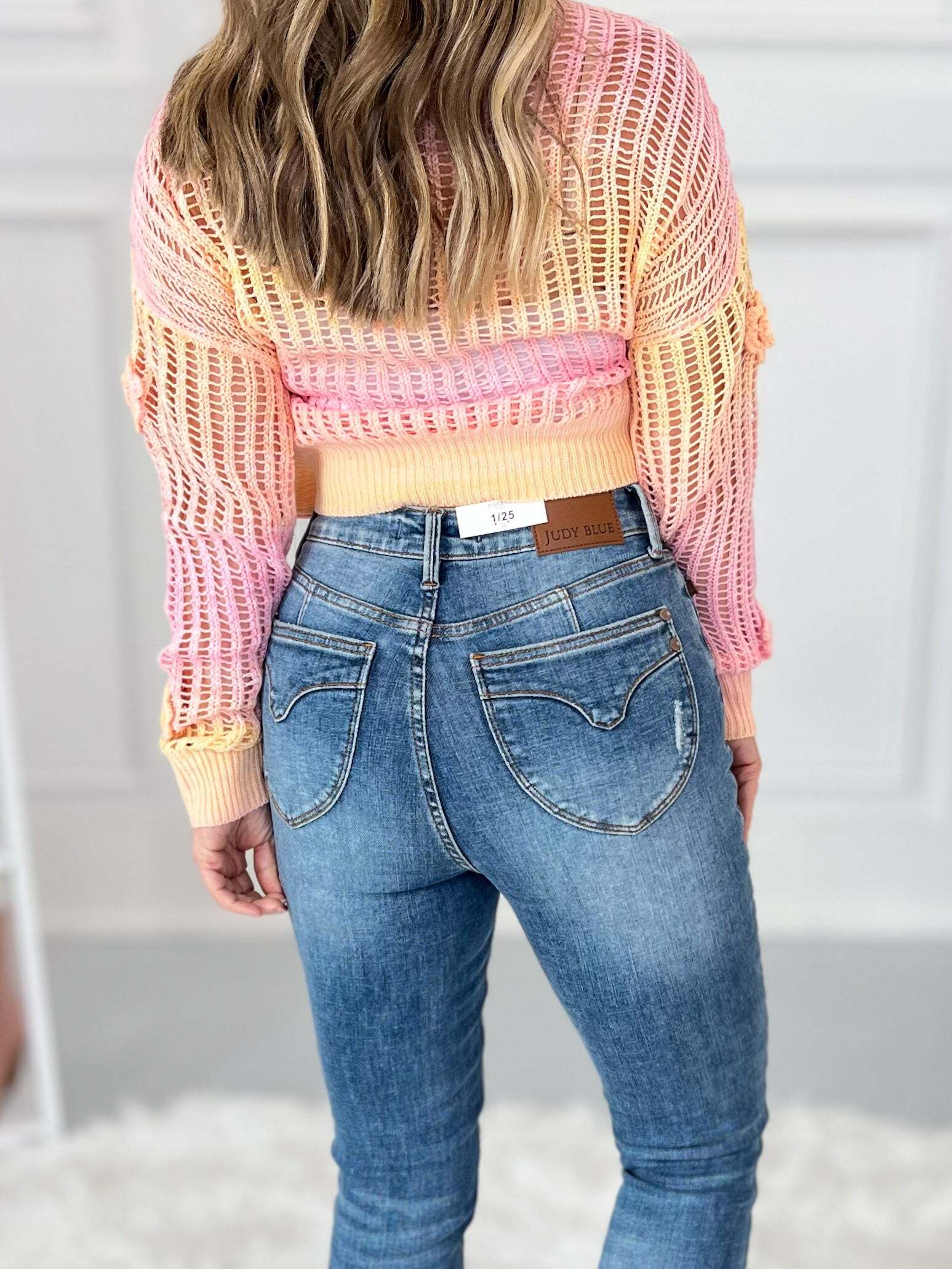 These beauties are all about the BOOTY! Designed to hug your curves in all the right aways, and give an instant butt-lift, we are loving every bit of these Judy Blues for fall. The back pocket detail, dart stitching and hand sanding enhances your backside and make you feel like a million bucks. Plus they have gorgeous grain detail with a raw edge ankle that eliminates any bulk when you cuff them over or tuck them into boots. Super stretchy and ultra flattering!