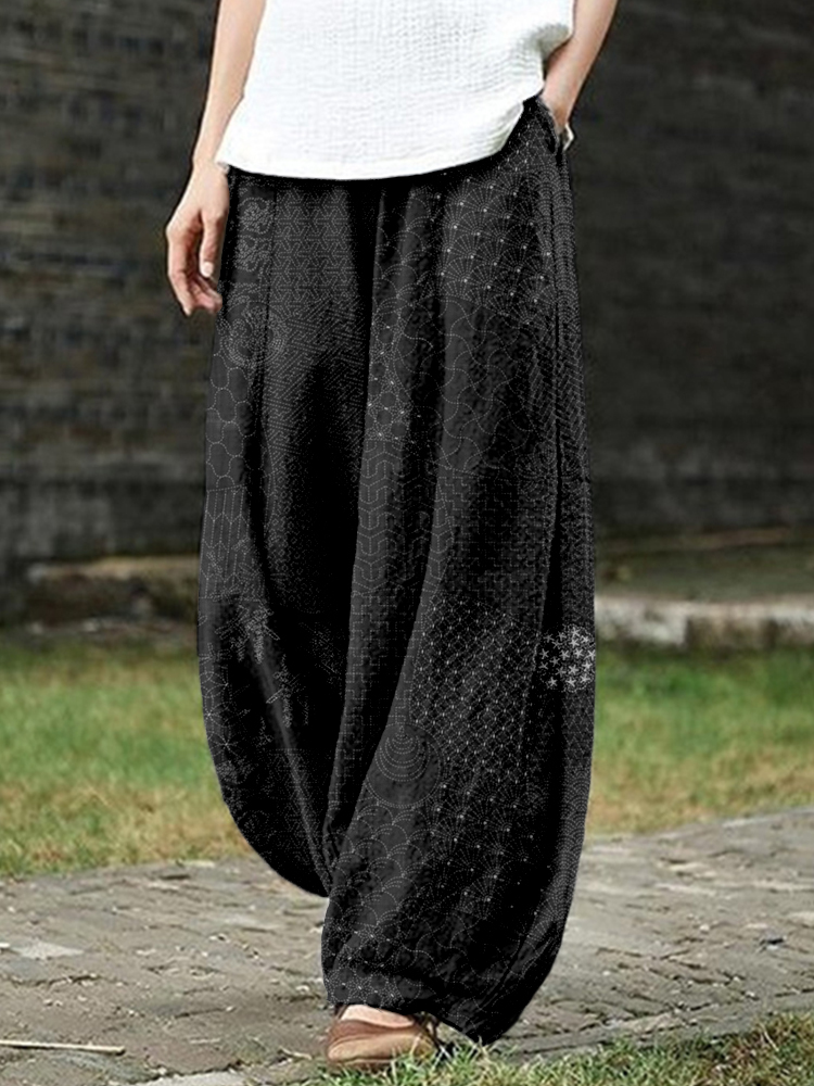 Japanese Traditional Sashiko Art Linen Blend Casual Pants