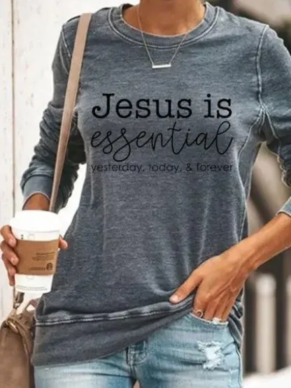 Jesus Is Essential Ysterday Today Forever Printed Casual Long Sleeve T-Shirt