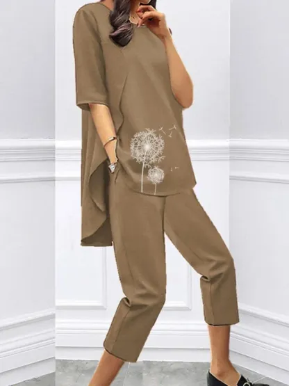 Product: Loose Short Sleeve Casual Printed Seven-piece Two-piece SuitGender: WomenType: Women's SuitColor: Black; Khaki; Green