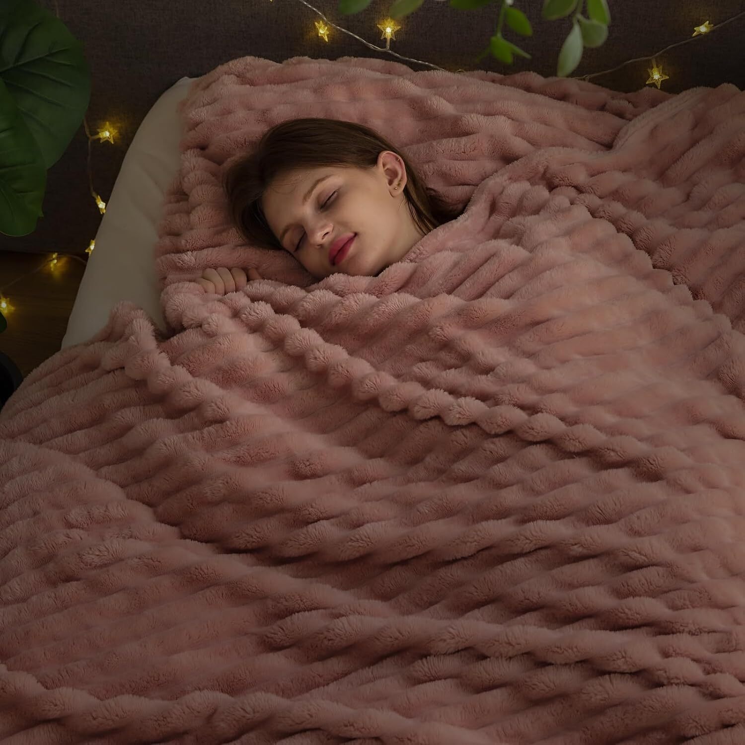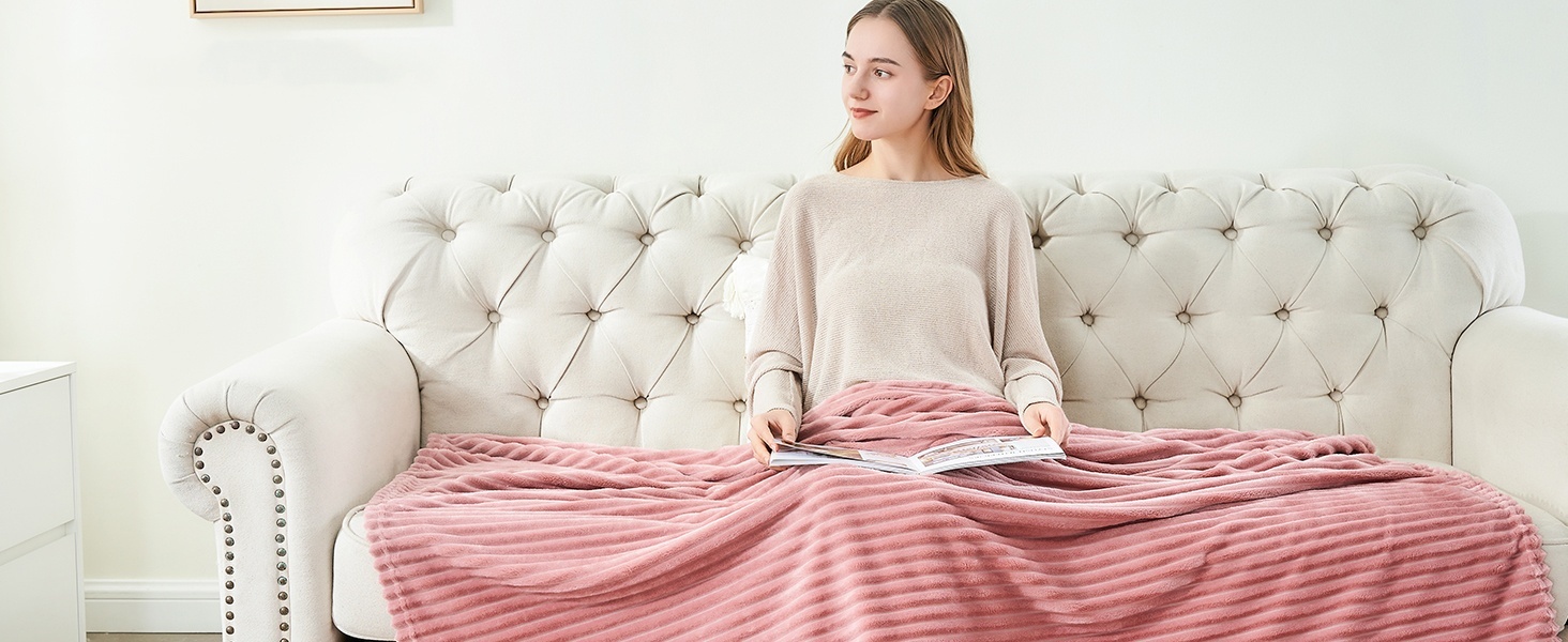 With a 3D ribbed stripe pattern, This flannel fleece throw blanket utilizes 100% premium microfiber polyester that is super soft, fluffy, anti-pilling, and lightweight yet could keep warm on chilly days.