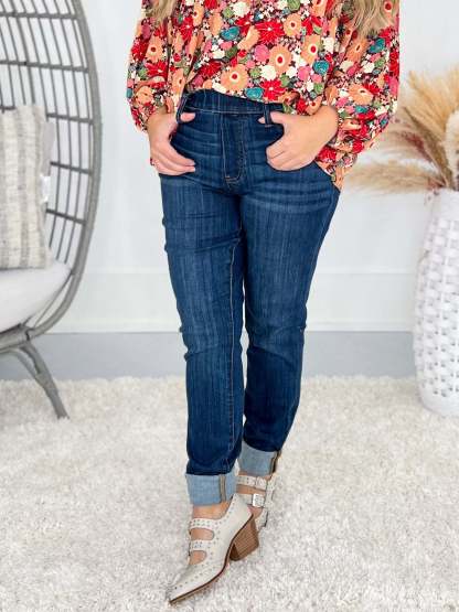 Ladies! These jeans are a 10 out of 10, A+, check every box... and a definite must! They combine the ultimate in comfort - with a pull on waist, stretch for days and a slim fit silhouette - but they don't compromise style either! Featuring a vertical graining that lengthens the leg and a smoothing effect over the waist and hips. They have a total upgraded fit to a traditional skinny jean and with zero distressing, you can rock them to the office!