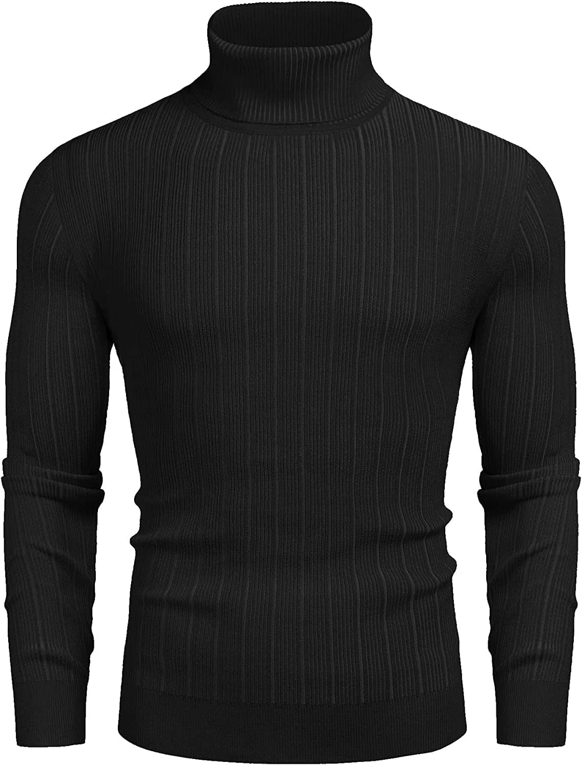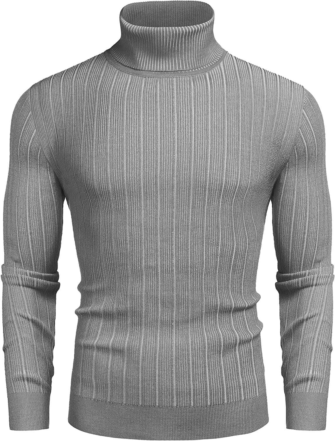 Men's ribbed turtleneck sweaters design in slim fit, vertical textured pattern, high neck, long sleeves and hem.