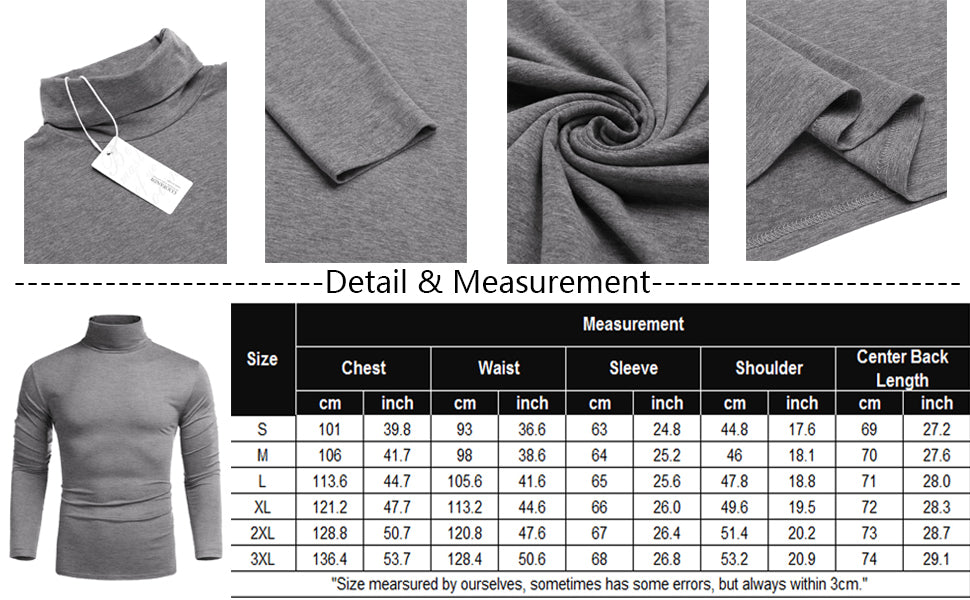 SOFT FABRIC: This Slim Fit Turtleneck T Shirt made from high quality cotton blend fabric, gives you a soft, lightweight and comfortable wearing experience.