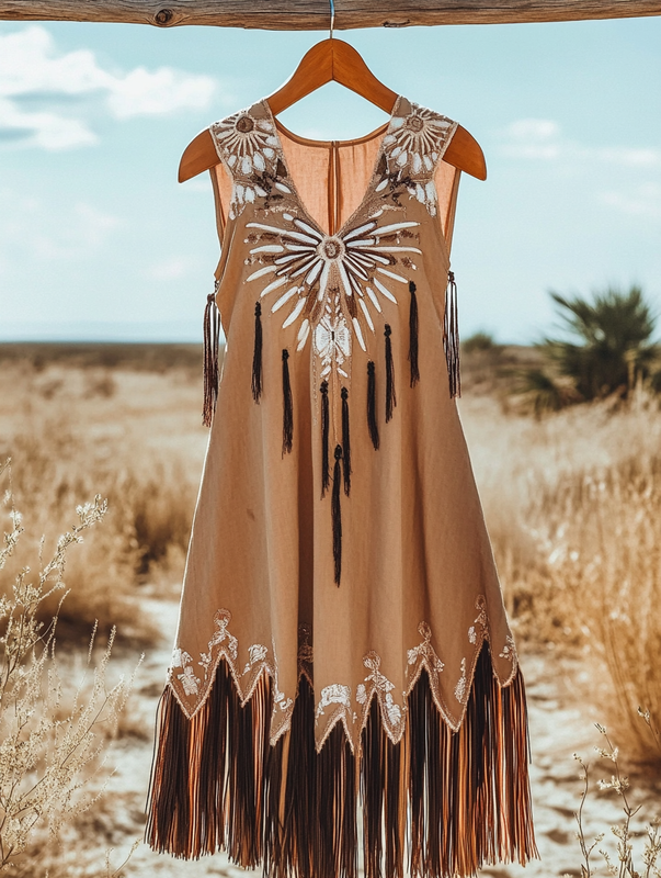 Summer Retro Western Tassel Embroidered Dress 685d