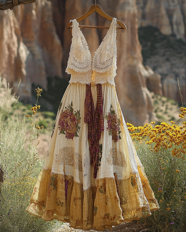 Summer Vintage Floral Lace Patchwork Dress 013f