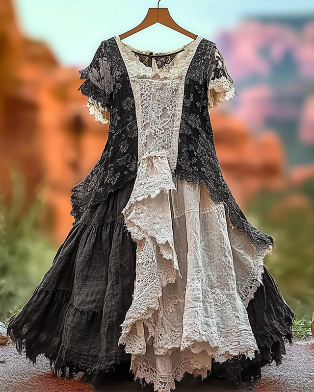 Summer Vintage Floral Lace Patchwork Dress 1b59