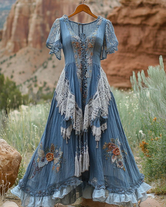 Summer Vintage Floral Lace Patchwork Dress 55a3