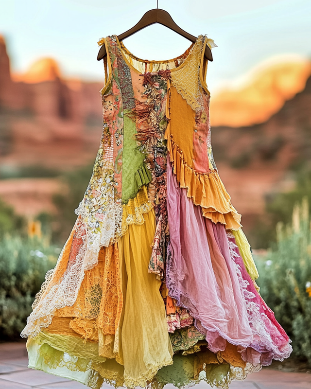 Summer Vintage Floral Lace Patchwork Dress 90e9