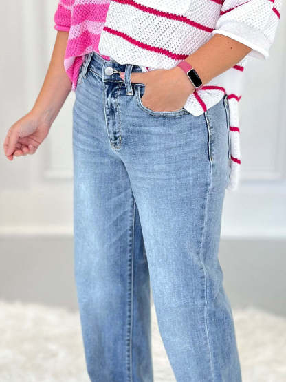 When it comes to straight leg jeans, Judy Blue is the best in all the denim lands! These beauties combine stretch, comfort, a light weight feel and somehow still magically mold to your shape and don't have saggy booty! They are HR approved with zero distressing, so tell the boss it's Denim Day because you will definitely want to wear these seven days a week. Make sure you check the sizing advice for this pair (hint: you may want to size down extra!)