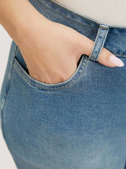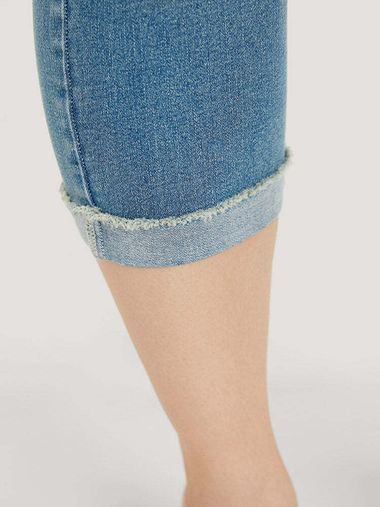 Very Stretchy High Rise Medium Wash Roll Hem Cropped Jeans