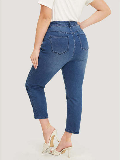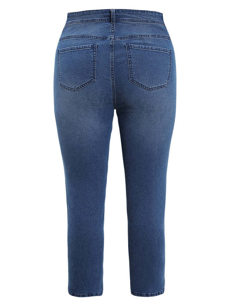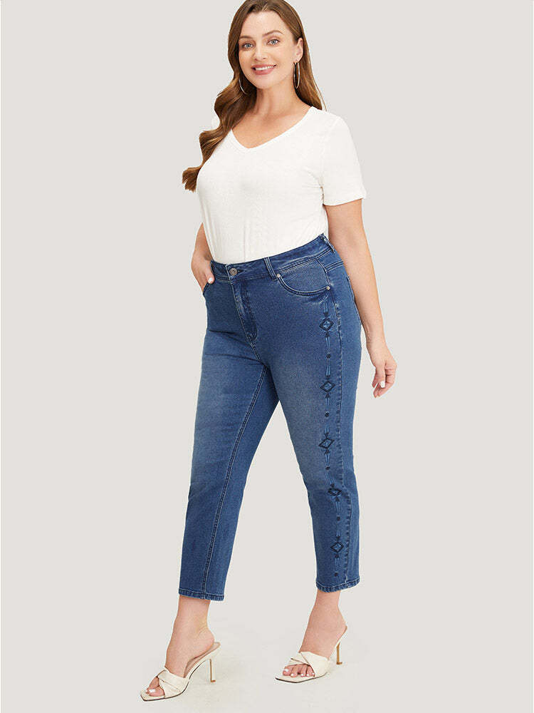 Very Stretchy Medium Wash Geometric Embroidered Jeans