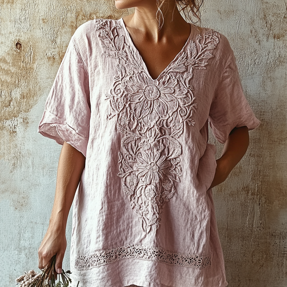 Vintage Floral Lace Art Comfy V Neck T Shirt 987f