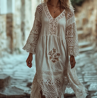 Vintage Loose Linen Patchwork Dress e954