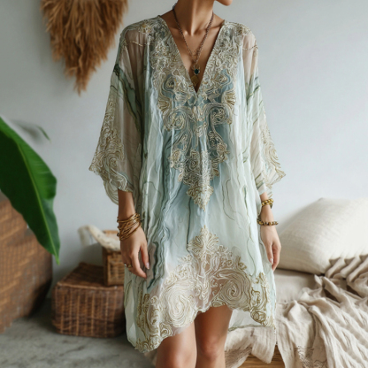 Vintage Marble Texture Collection Retro Bohemia Women Style Gradient Gilded Pattern Linen Dress