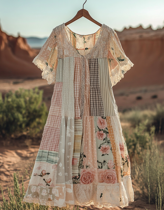 Vintage Summer Print Patchwork Dress f107