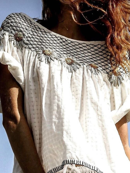Vintage Sunflower Floral Art Cotton Linen Comfy Shirt
