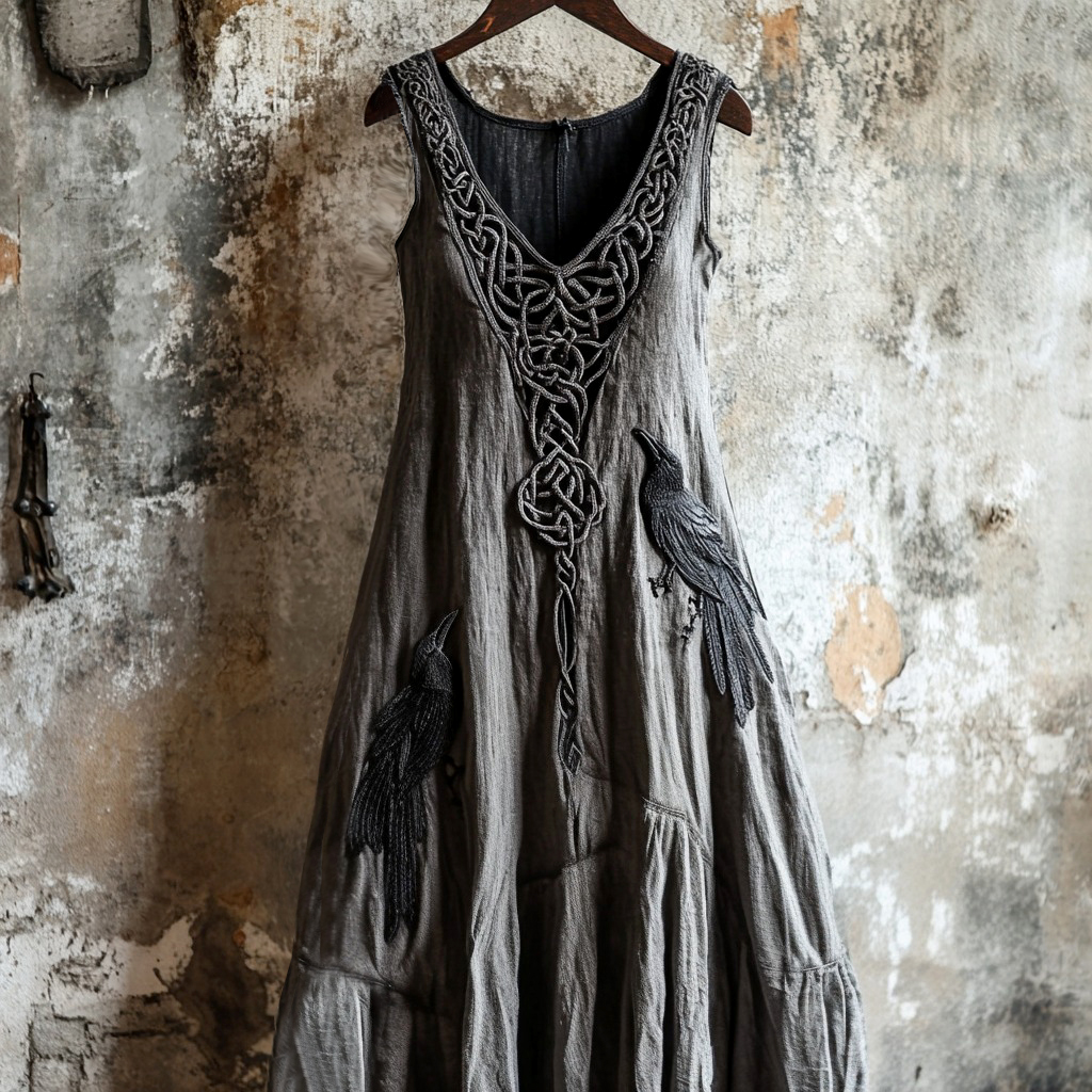 Vintage Viking Raven Celtic Knot Art Linen Tank Dress