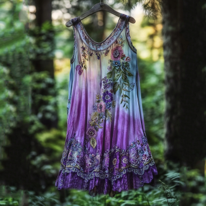 Vintage Violet Gradient Lace Art Linen Sleeveless Tank Top