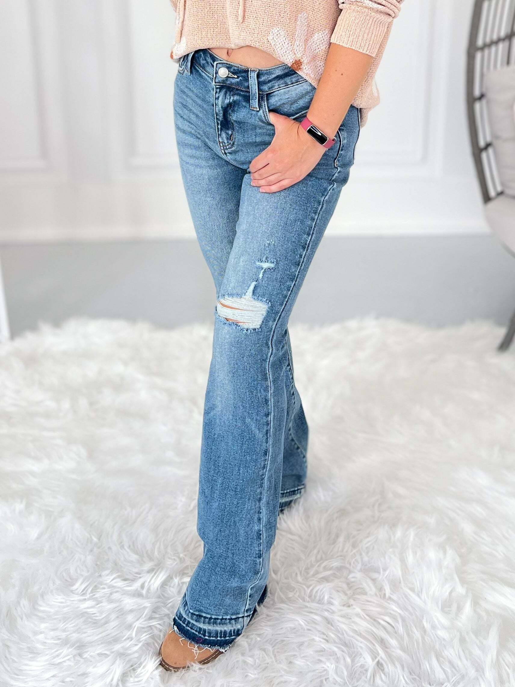 These Judy Blue bootcuts blew us away! They are so on trend with the single knee distressing, shadow hem finish, and of course the silhouette that makes your leg look long and hugs your curves in all the right ways. This pair also FEELS amazing on. They have the perfect balance of stretch and structure to keep them in place wear after wear, while being ultra comfortable too.