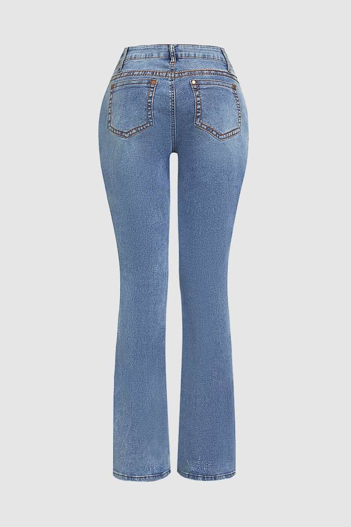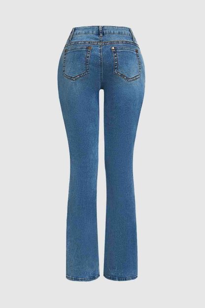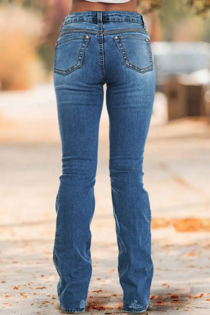Fitted through the waist and hips and gradually widen from the knee to the ankle. Bootcut jeans have a slightly flared leg opening, which allows for comfortable and easy fitting