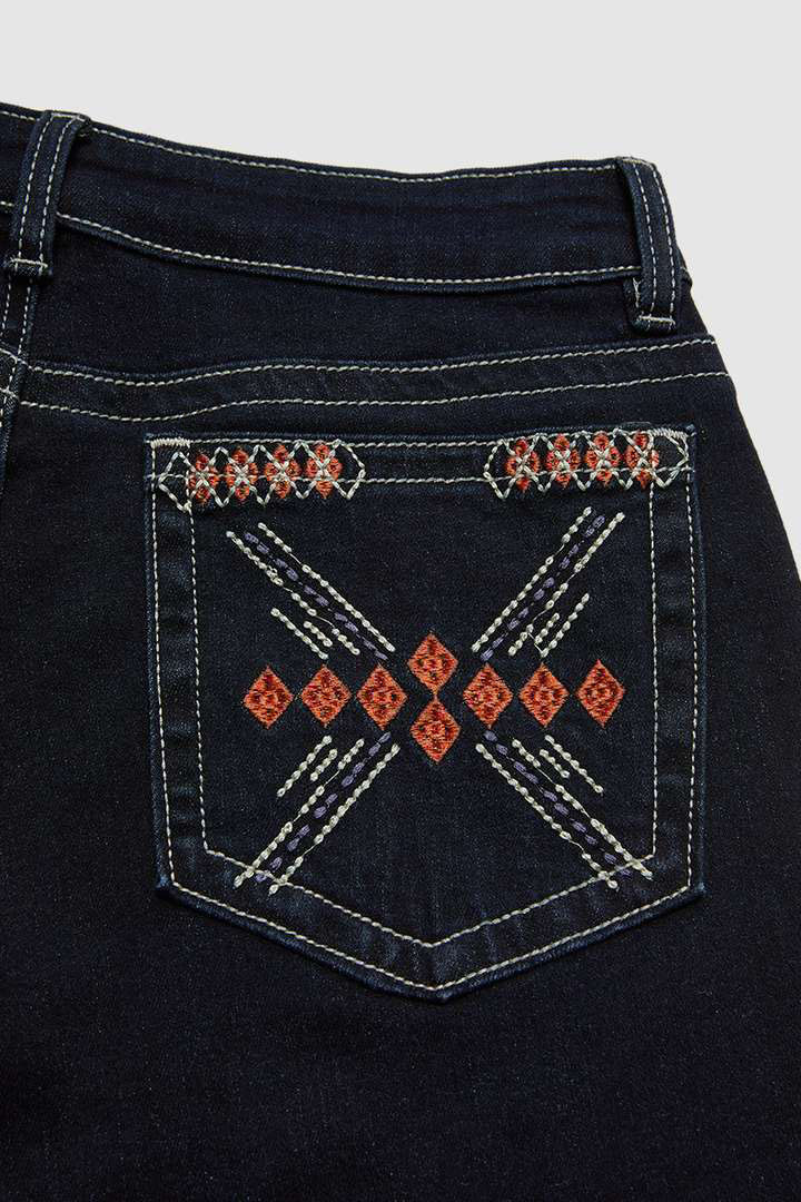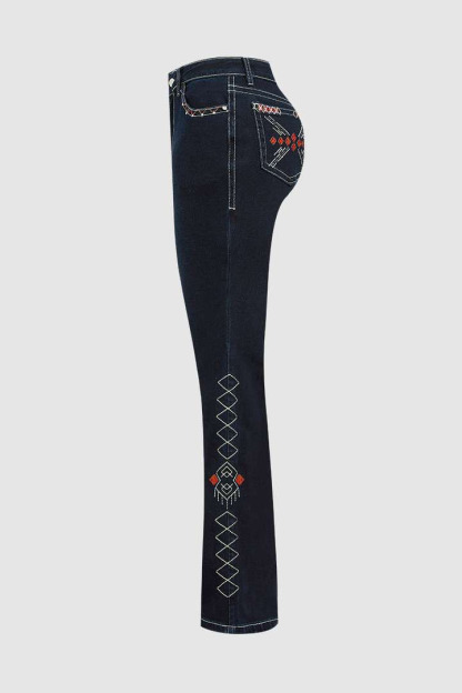 Wash Geo Embroidery Rhinestone Decor Mid Rise Bootcut Jeans Without Belt
