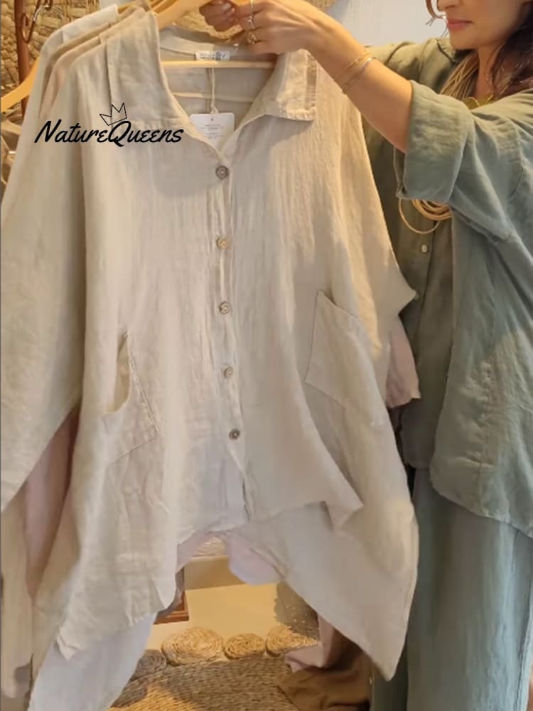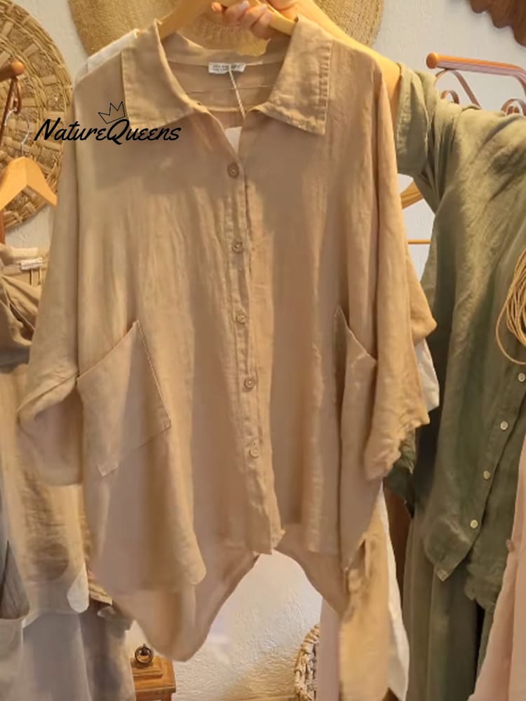 Style: CasualFit Type:FitShirt Length: Over HipSleeves Length: 3/4 sleeveCollar: shirt collarMaterial:Linen Cotton Material Stretch: No StretchPattern Type: Weight: 0.200kgPackage: 1 x Shirt