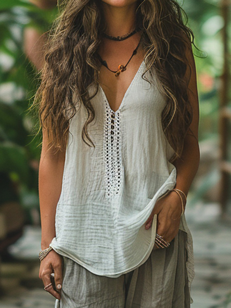 Women's Ethnic Style Linen V-neck Sleeveless Top