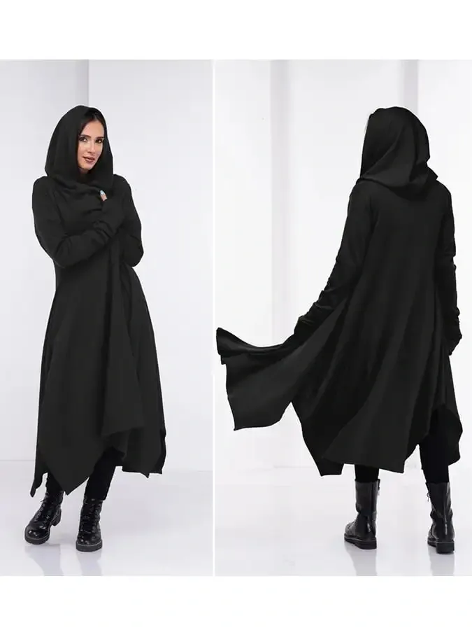 Women's Halloween Asymmetric Witch Long Coat & Cape