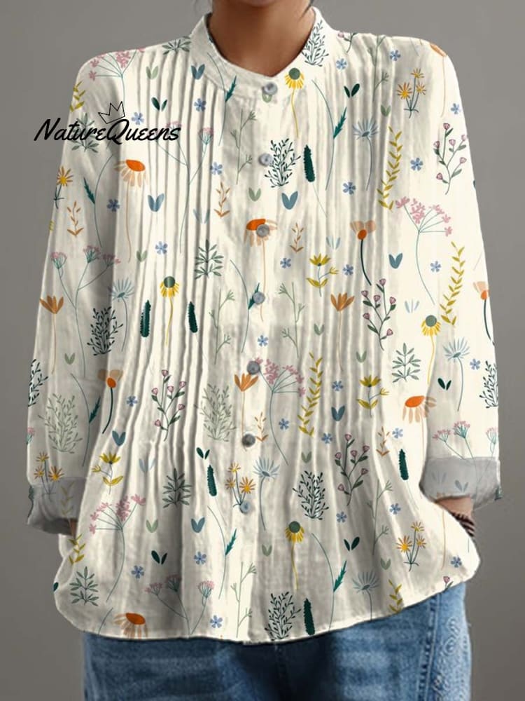 Women's Lovely Floral Art Print Casual Cotton And Linen Shirt