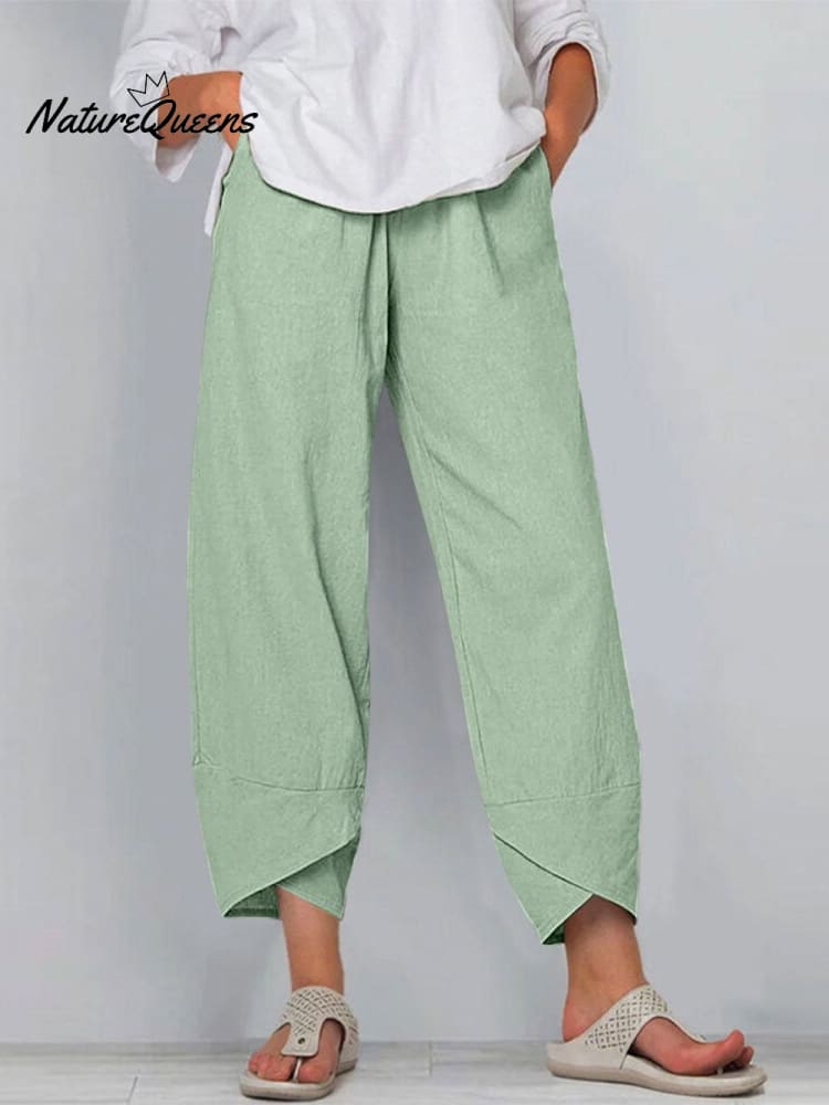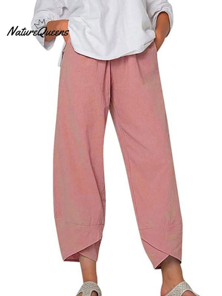 Women's Solid Color Loose Elegant Casual Simple Cotton And Linen Ninth Pants