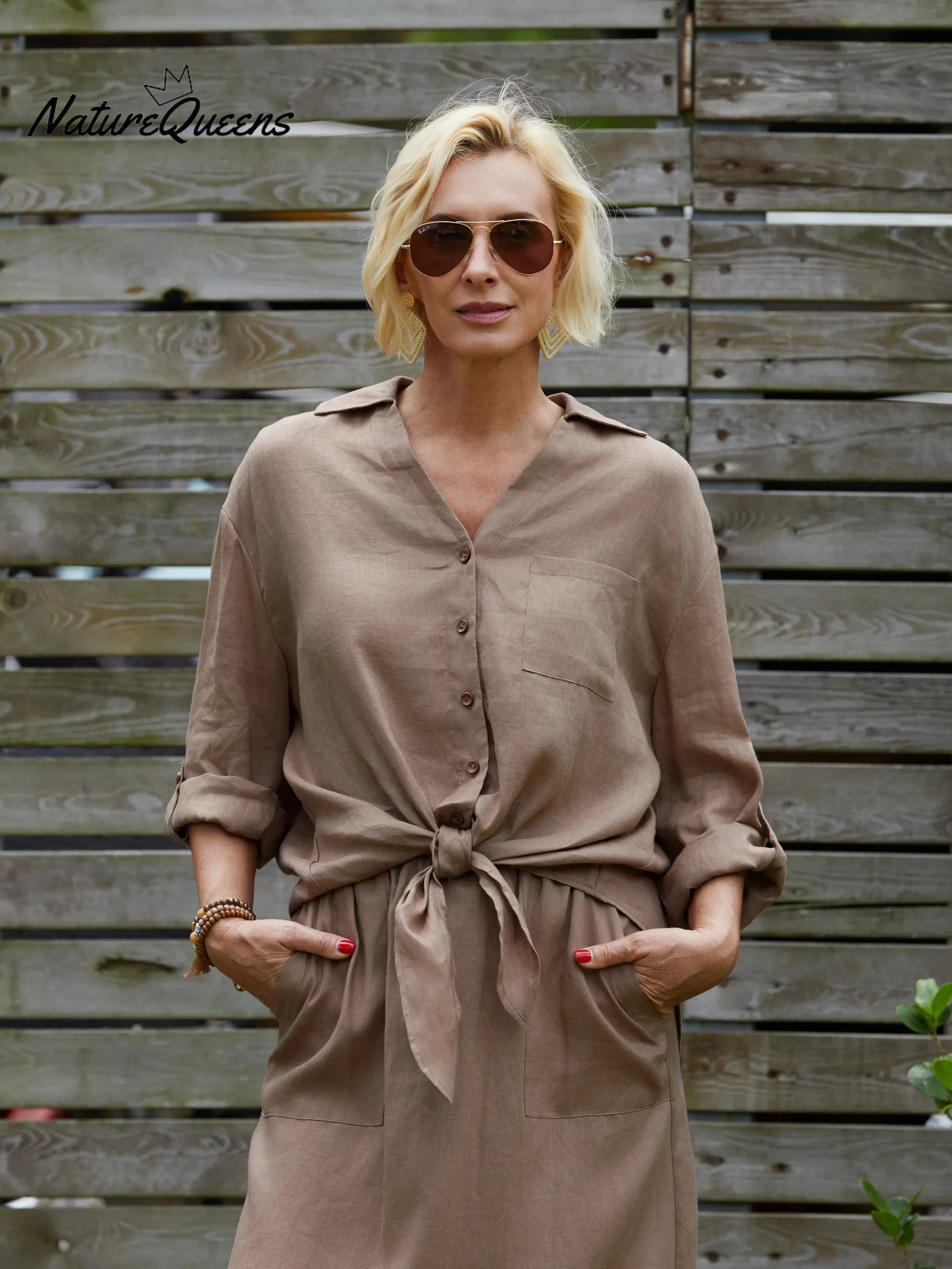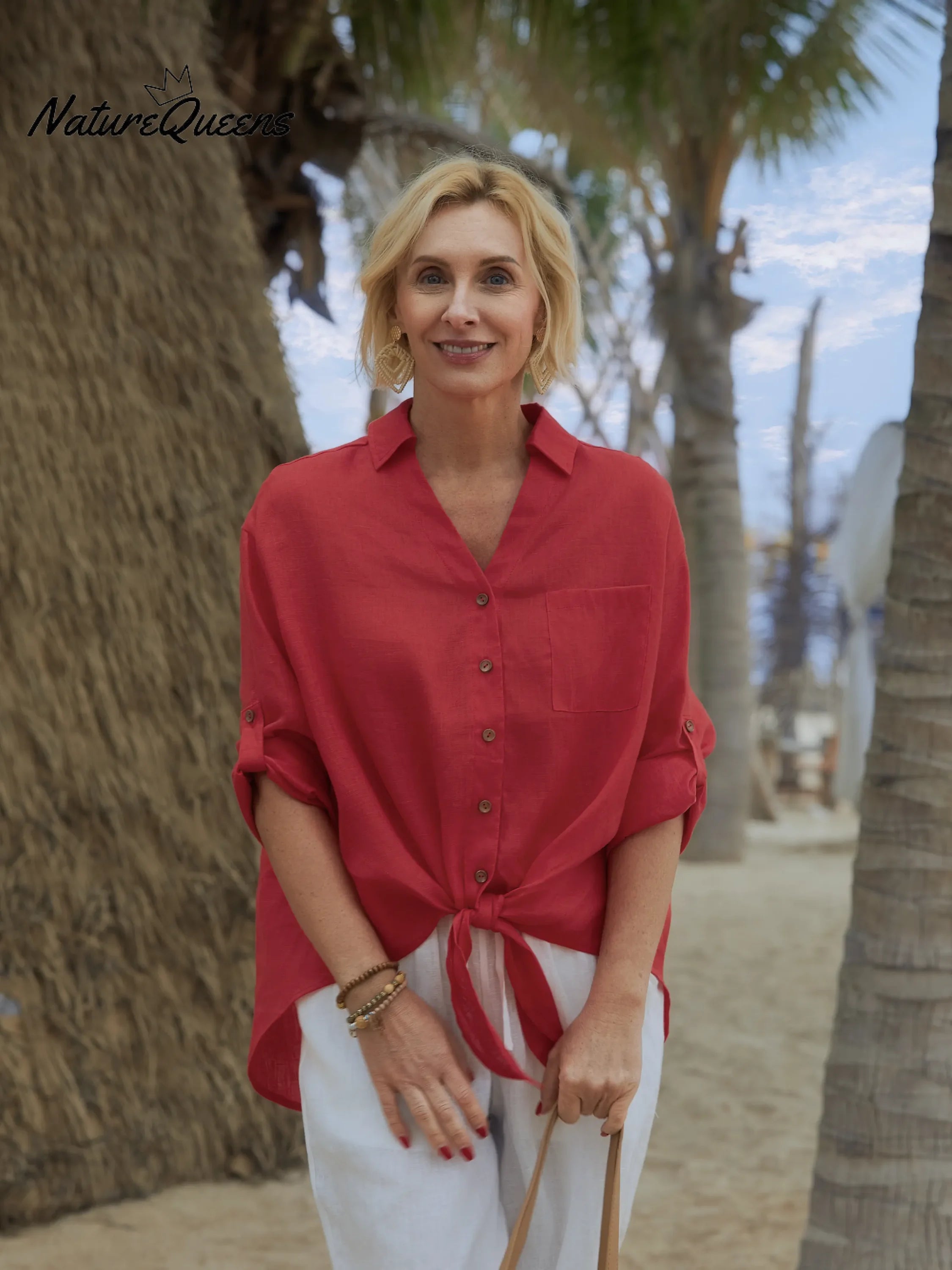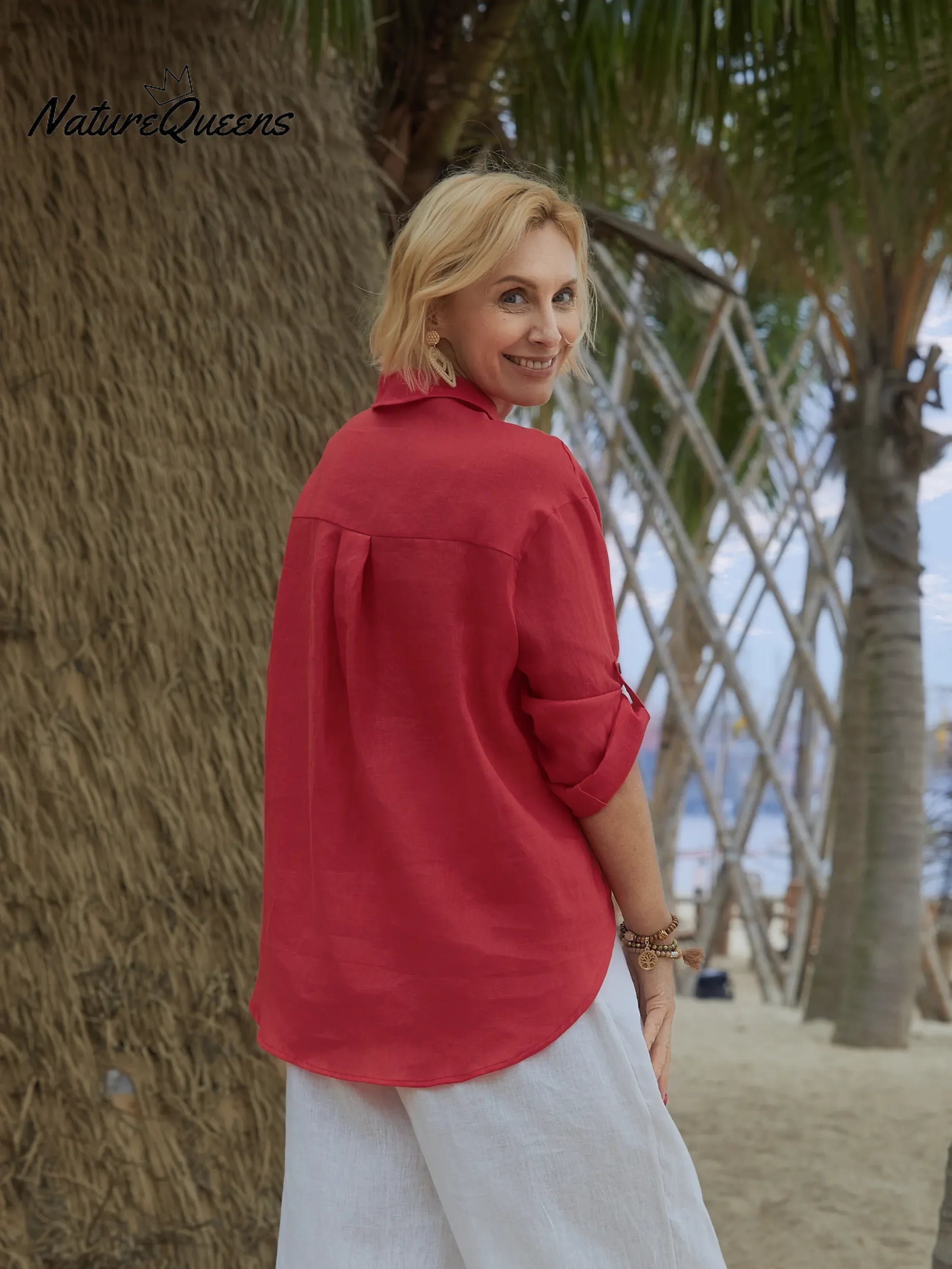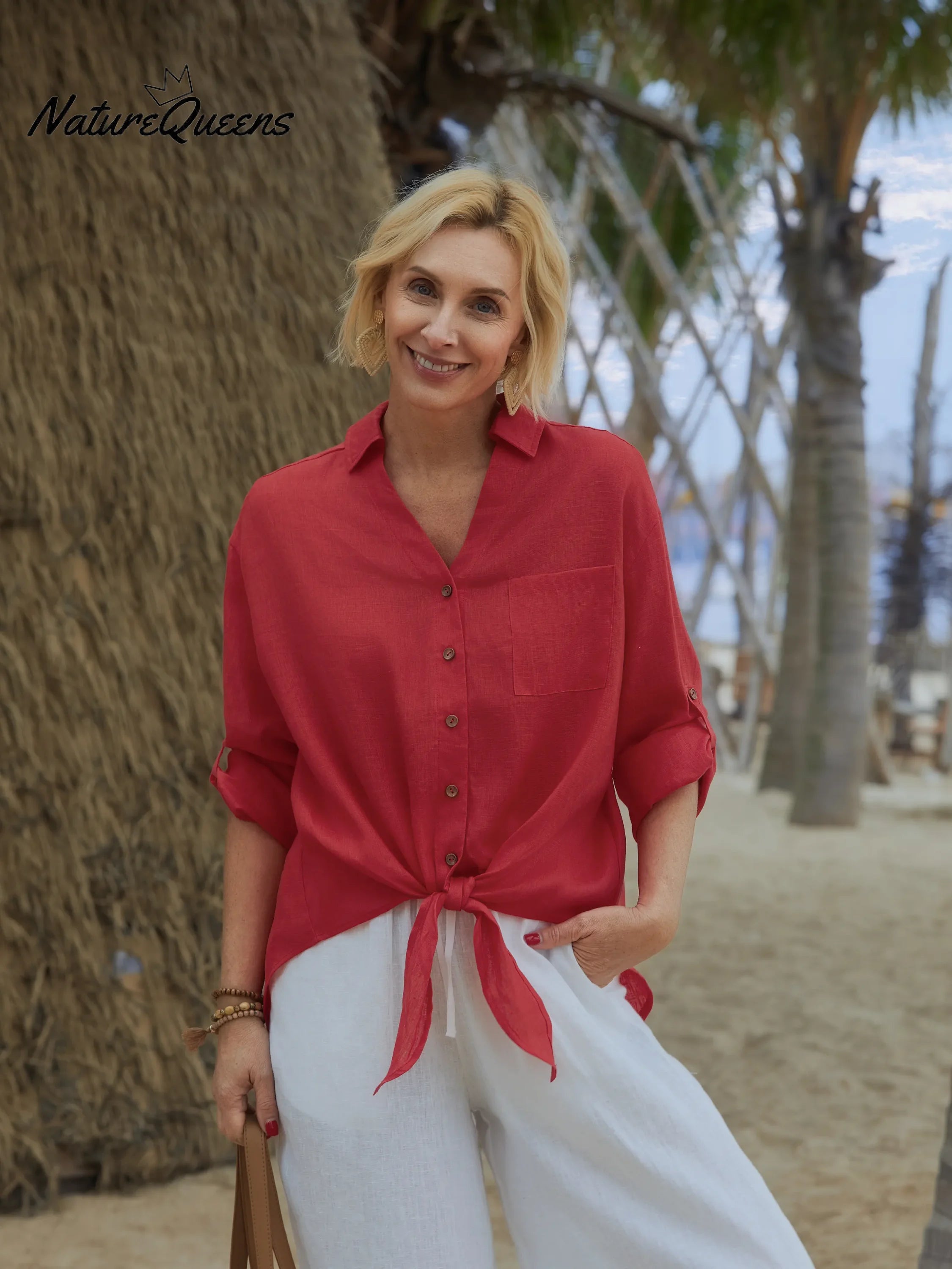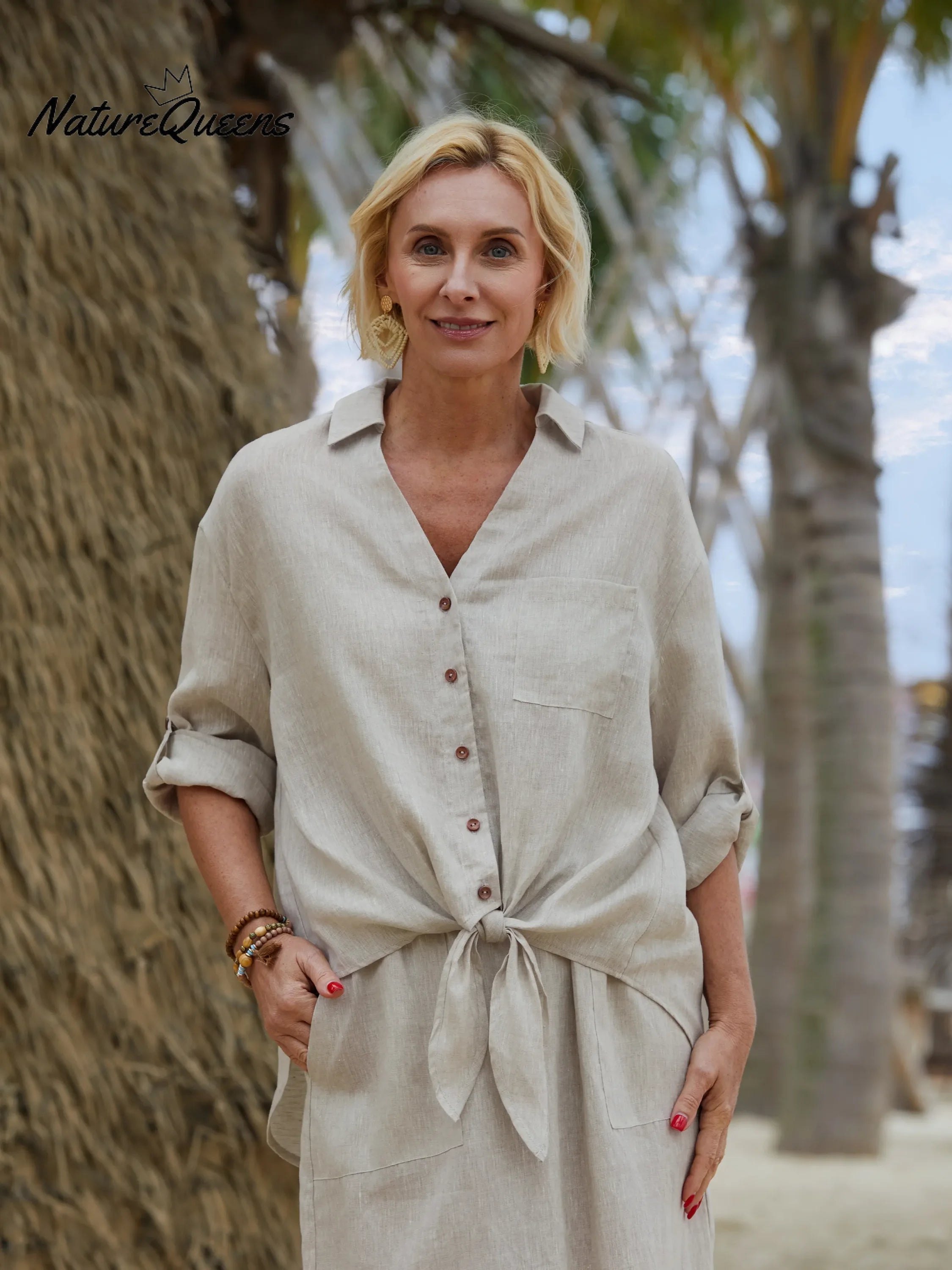 The V-neck design cleverly lengthens the neck line, making your clavicle looming, sexy and charming. The three-quarter sleeve design can not only cover the arm fat, but also reveal your slender wrists, making you full of femininity in every move.The strap design can be adjusted according to your body shape, highlighting the waist curve, giving you a perfect proportion instantly.High-quality linen material. This fabric is not only breathable and hygroscopic, but also very skin-friendly, and it is very comfortable to wear.