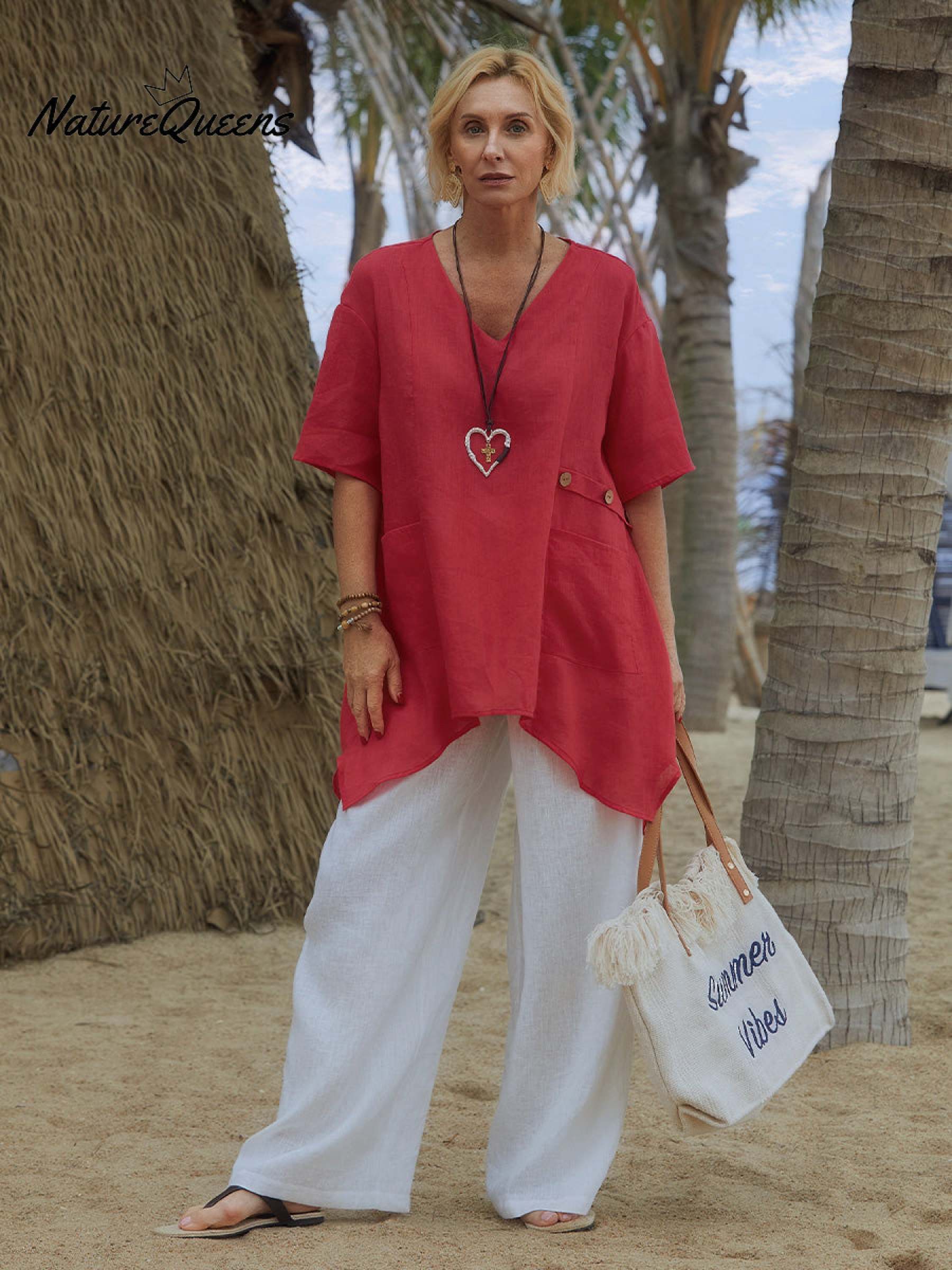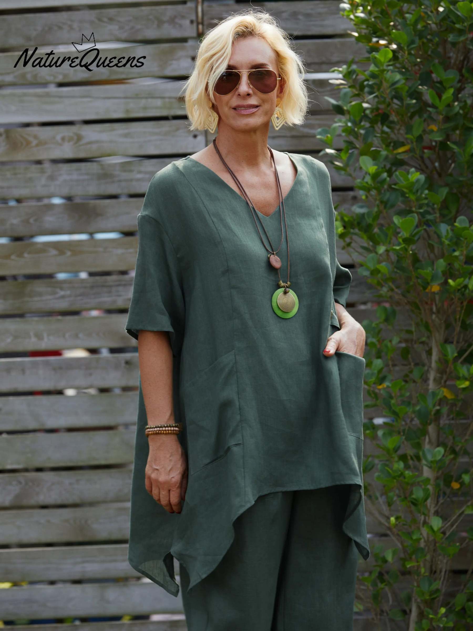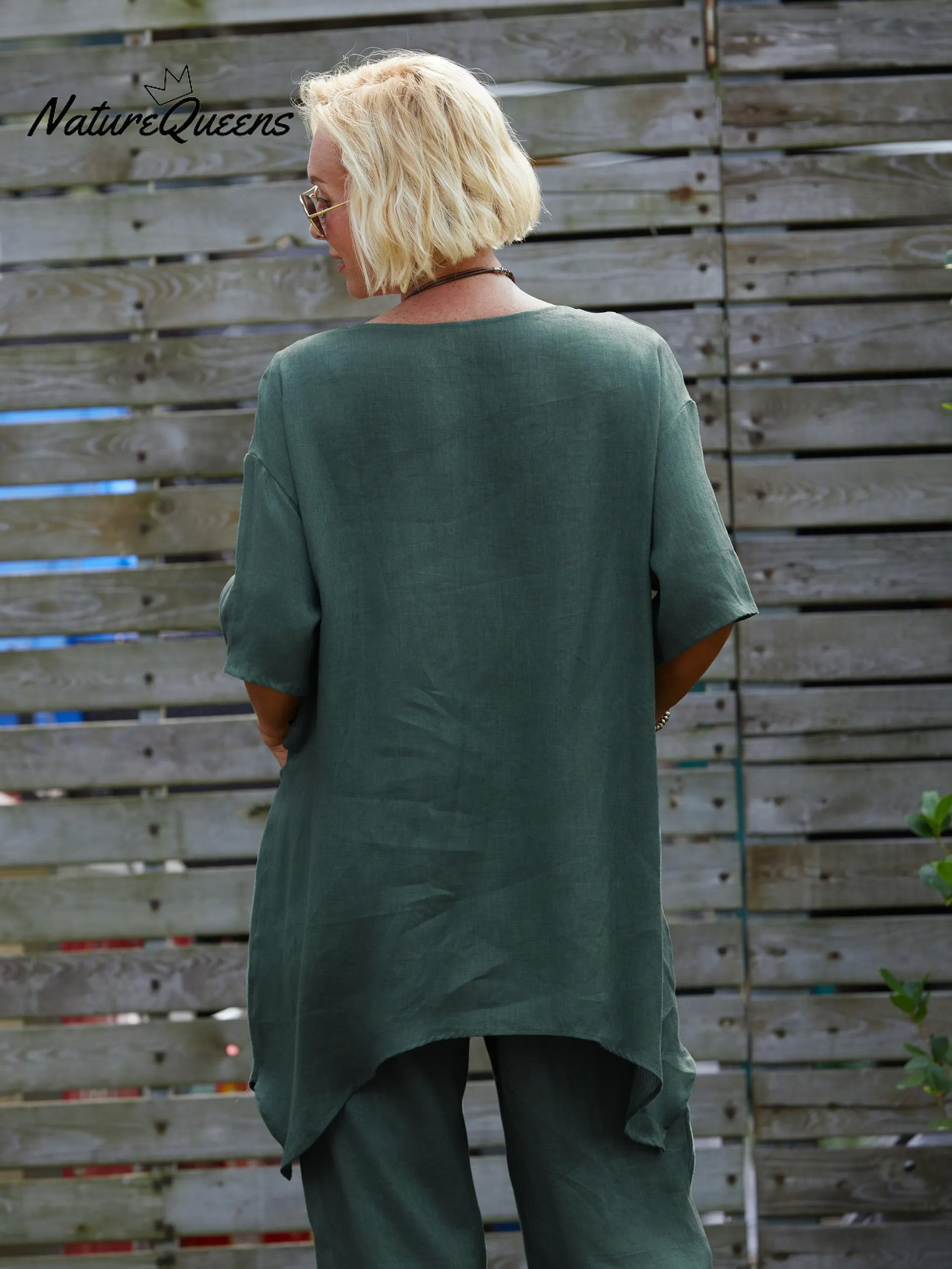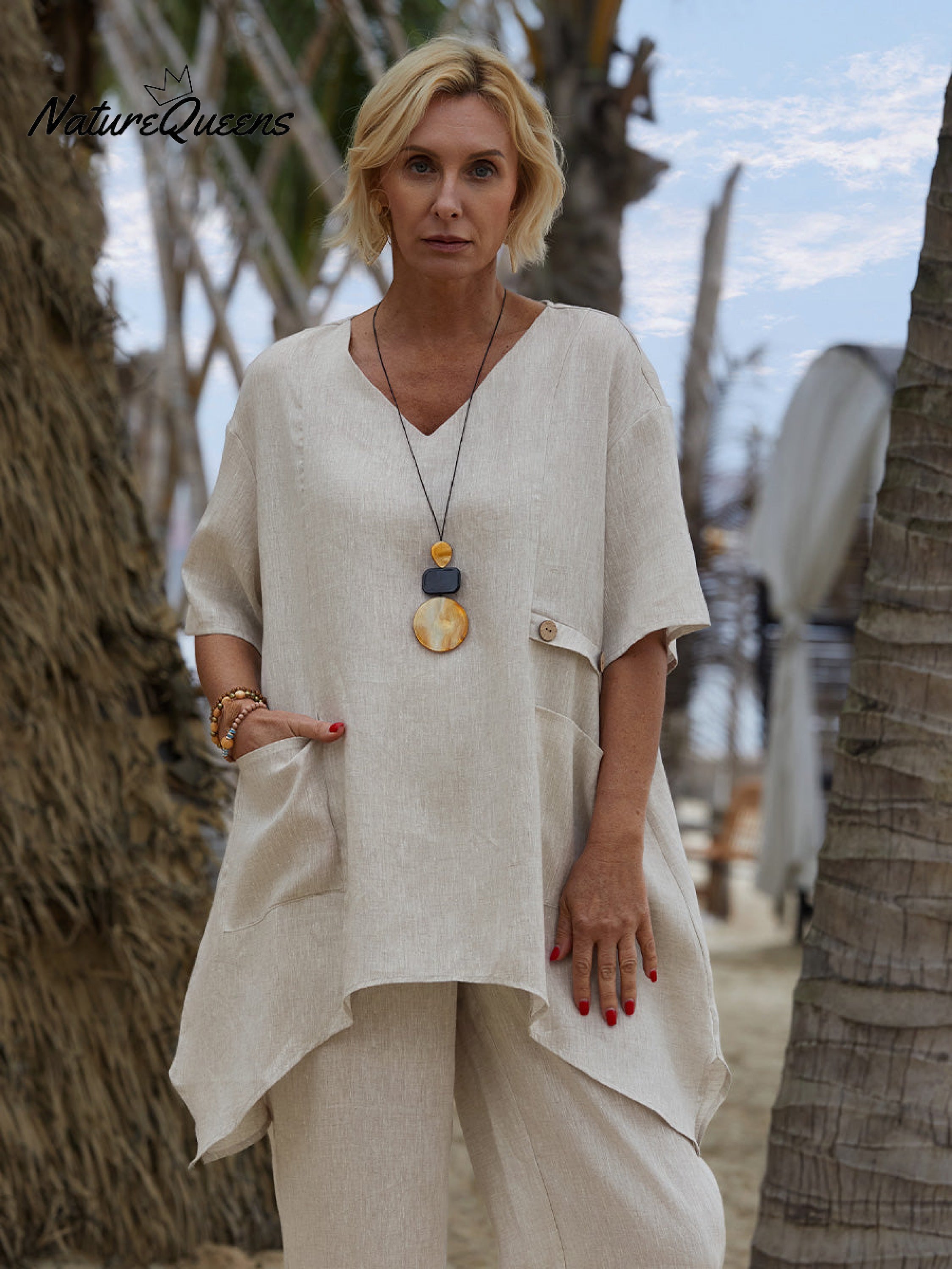 Enjoy breathable comfort and natural elegance with this 100% linen V-neck top. Made from a sustainable natural fiber known for its moisture-wicking and cooling properties, this top is a perfect choice for warm-weather dressing.