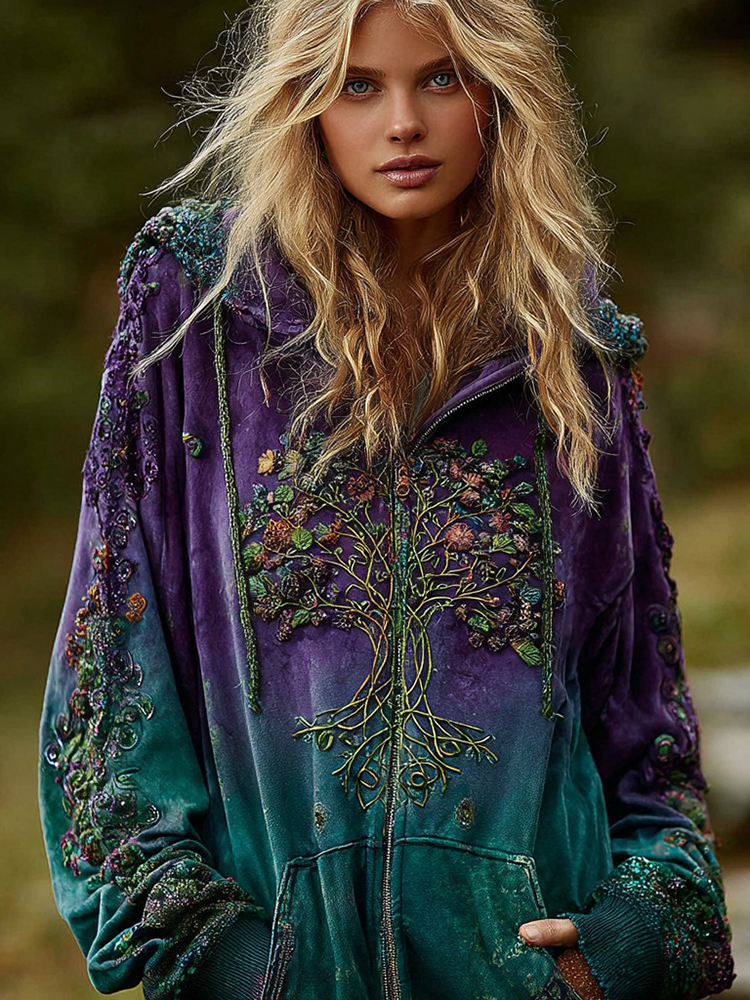 Women's Viking Celtic Knot Tree Of Life Comfort Warm Zip Hoodie