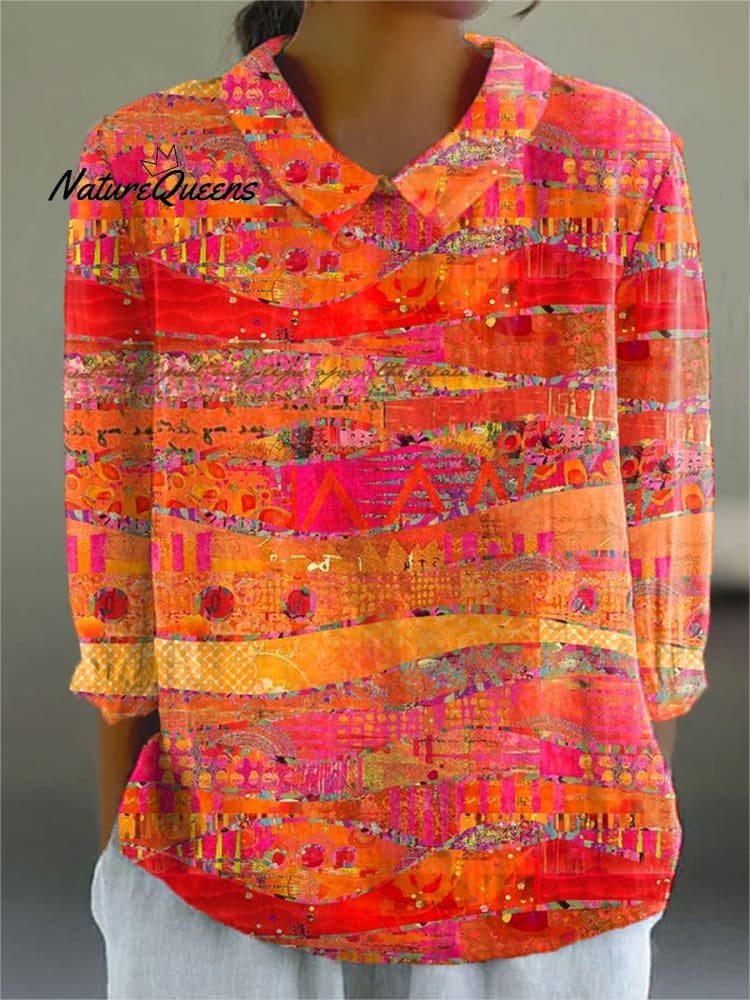 Women's Vintage Art Print Casual Cotton And Linen 3/4 Sleeve Shirt