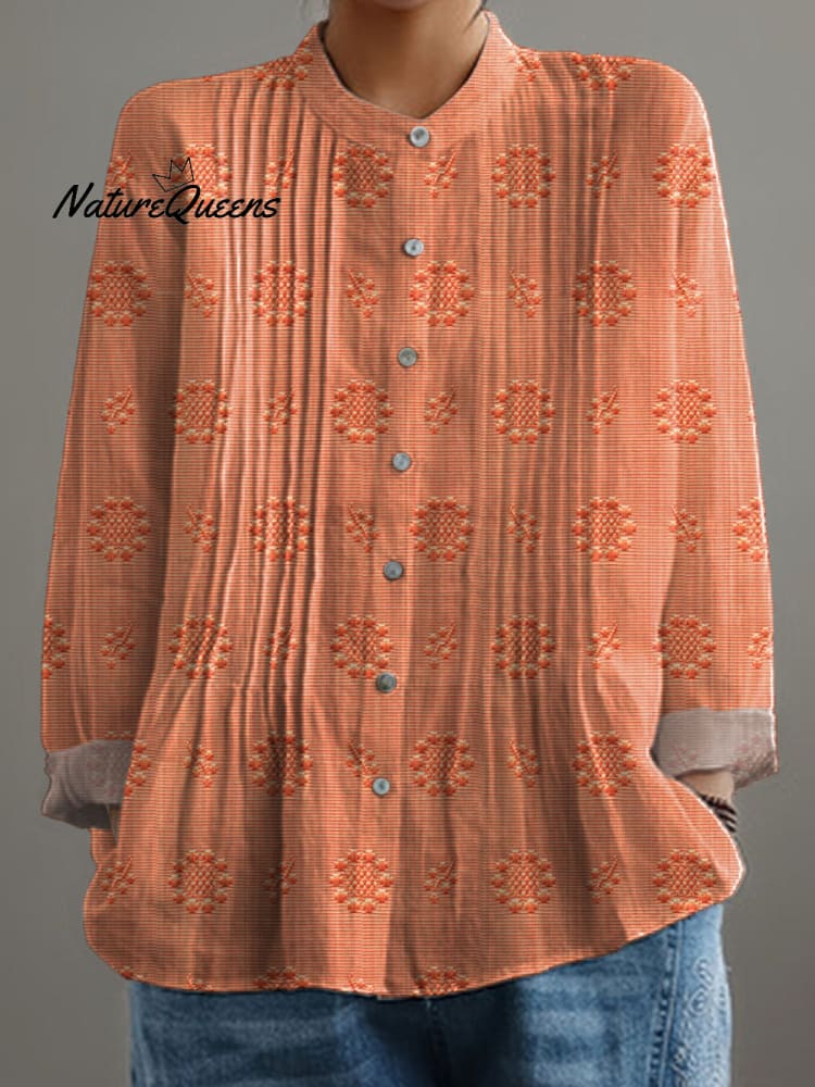 Women's Vintage Floral Art Print Casual Cotton And Linen Shirt