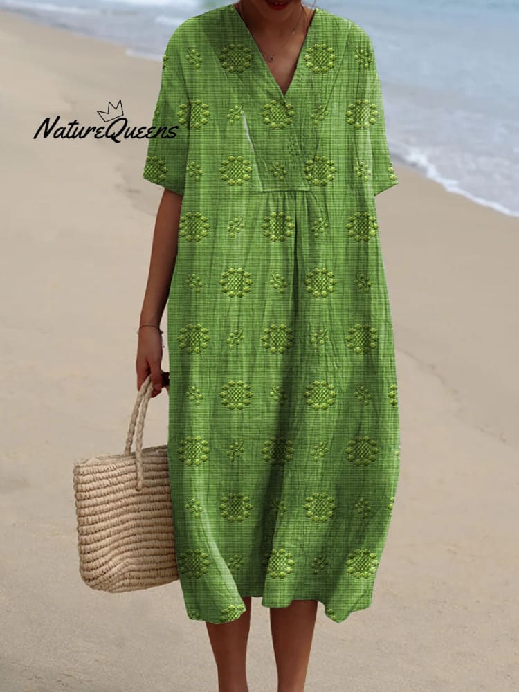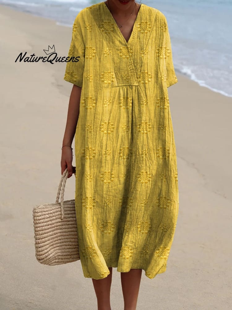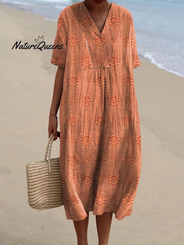 Women's Vintage Floral Pattern Art Print Flowy Cotton Dress