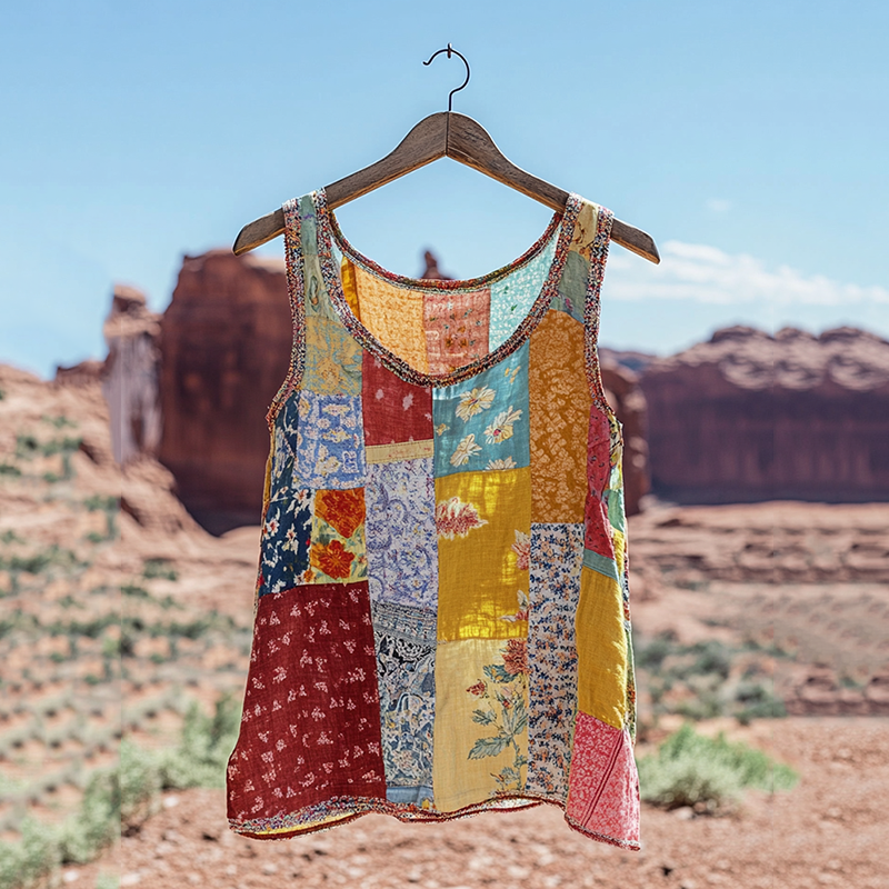 Women's Vintage Patchwork Flower Print Tank Top