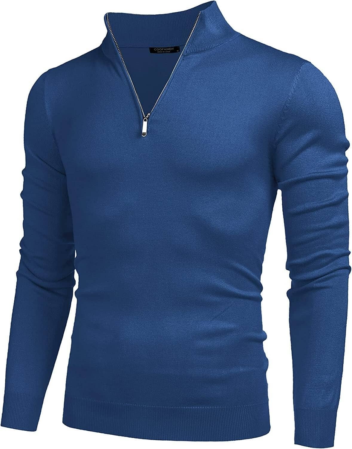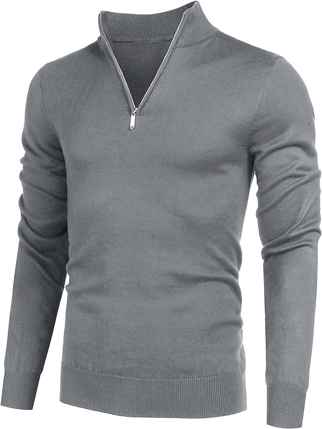 Zip Up Slim Fit Lightweight Pullover Polo Sweater (US Only)